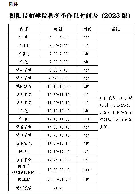 附件:衡陽(yáng)技師學(xué)院秋冬季作息時(shí)間表(2023版)