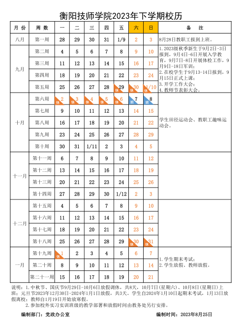 衡陽(yáng)技師學(xué)院2023年上學(xué)期校歷
