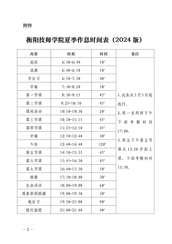附件:衡陽技師學(xué)院夏季作息時間表(2024版)