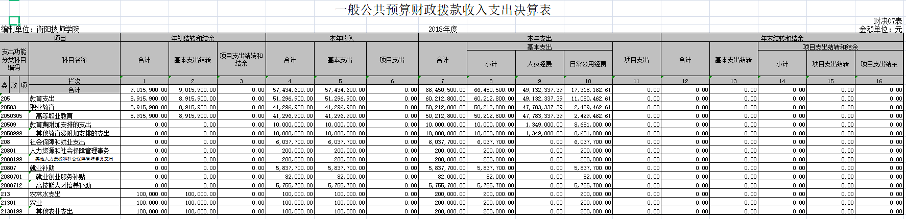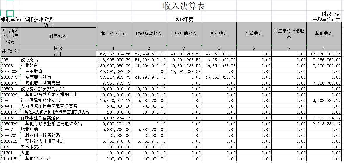 衡陽技師學院2018年度部門決算公開