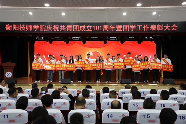 5月10日下午,衡陽技師學院慶祝共青團成立101周年暨團學工作表彰大會在公共實訓基地11樓多功能報告廳舉行。大會表彰了學院紅旗團總支、志愿服務先進集體、紅旗團支部、優(yōu)秀班集體、優(yōu)秀青年教工、優(yōu)秀志愿者、優(yōu)秀共青團員、優(yōu)秀共青團干部、三好學生、優(yōu)秀學生干部、國家獎學金獲得者、捐獻造血干細胞特別貢獻獎。