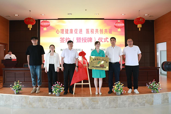 為提升學(xué)生心理素質(zhì),健全心理健康服務(wù)體系,近日,我院與衡陽市第二人民醫(yī)院舉行“心理健康促進,醫(yī)校同創(chuàng)共建”簽約儀式。學(xué)院黨委委員、副院長肖芳代表學(xué)院與衡陽市第二人民醫(yī)院簽訂醫(yī)校合作協(xié)議,并共同為大學(xué)生心理健康暨危機干預(yù)指導(dǎo)站揭牌。
