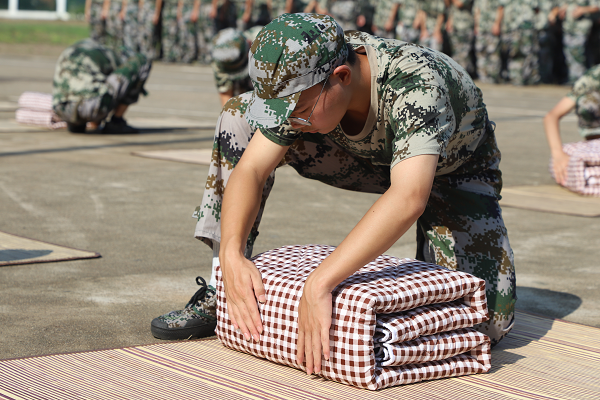 軍訓匯報展示環(huán)節(jié),先后進行分列式、軍體拳、疊被子等訓練展示。同學們的一招一式,盡顯奮發(fā)向上的良好風貌,棱角分明的“豆腐被”,體現(xiàn)出同學們的優(yōu)良生活習慣。