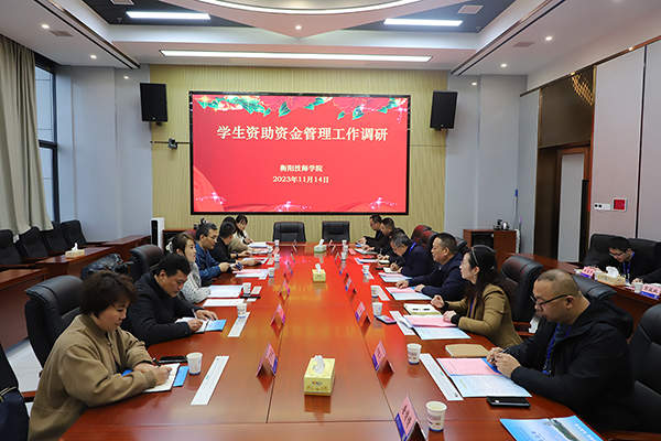 11月14日,國家人社部職業(yè)技能鑒定中心技工教育服務(wù)處(全國技工院校學(xué)生資助管理辦公室)處長(zhǎng)張宗輝一行來院調(diào)研學(xué)生資助管理工作,湖南省人社廳職業(yè)技能鑒定中心副主任王祥君、省技校服務(wù)部部長(zhǎng)孫悅軒、技校服務(wù)部干部劉聰、衡陽市人社局相關(guān)領(lǐng)導(dǎo)參加調(diào)研工作。學(xué)院黨委書記肖春林,院長(zhǎng)廖與飛,黨委委員、副院長(zhǎng)成朝陽、肖芳陪同調(diào)研。