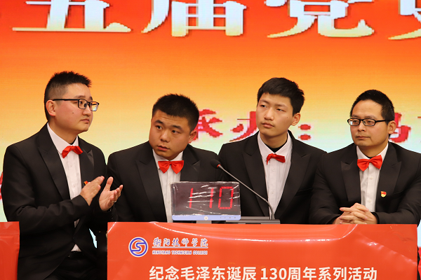 此次競賽分為“學(xué)富五車”必答題、“學(xué)無止境”搶答題、“博學(xué)多才”風險題以及“不服來戰(zhàn)”攻擂賽四個環(huán)節(jié)。參賽選手們用優(yōu)異的表現(xiàn),帶領(lǐng)場下觀眾接受了一次“沉浸式”的黨史教育?!榜R克思主義中國化”“中共一大”“《實踐論》”,一個個與毛澤東同志相關(guān)的歷史知識與思想理論,以黨史知識問答的形式生動展現(xiàn)在師生面前,競賽精彩激烈。
