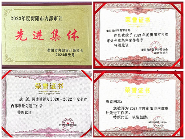 近日,湖南省內(nèi)部審計(jì)師協(xié)會表彰了2020-2022年全省內(nèi)部審計(jì)先進(jìn)集體和先進(jìn)工作者,衡陽市內(nèi)部審計(jì)師協(xié)會公布了2023年度全市內(nèi)部審計(jì)先進(jìn)集體和先進(jìn)工作者,學(xué)院審計(jì)處被評為“衡陽市內(nèi)部審計(jì)先進(jìn)集體”,審計(jì)處綜合科科長唐蓉同志被評為“湖南省內(nèi)部審計(jì)先進(jìn)工作者”,審計(jì)處處長周鑒同志被評為“衡陽市內(nèi)部審計(jì)先進(jìn)工作者”。
