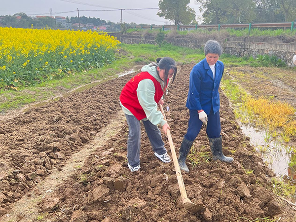 志愿者深入田間地頭幫助村民搶抓農(nóng)時,助力農(nóng)耕。