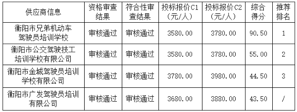 衡陽技師學院機動車駕駛員培訓校企合作項目于2024年5月22日結束,現將中標結果公告如下: