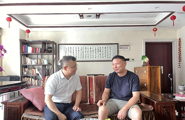 在離退休第四黨支部書記劉忠賢家中,肖春林對他為學(xué)院事業(yè)發(fā)展做出的貢獻(xiàn)表示肯定,希望其繼續(xù)發(fā)揮黨支部“領(lǐng)頭雁”作用,推動(dòng)學(xué)院離退休干部黨建工作高質(zhì)量發(fā)展。