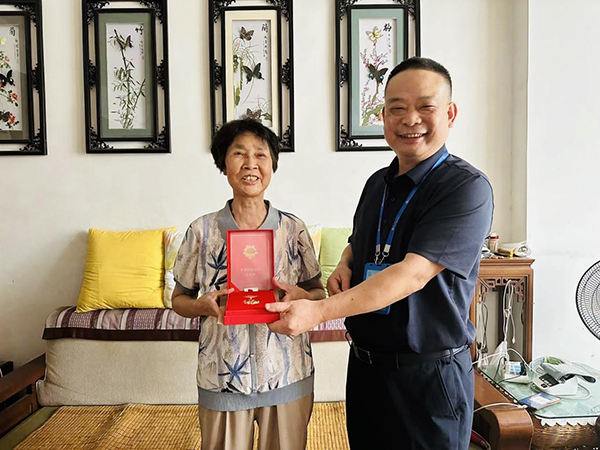 廖與飛為劉詩秀頒發(fā)“光榮在黨50年”紀(jì)念章