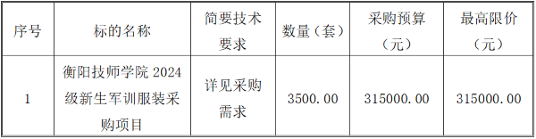 采購項目名稱:衡陽技師學(xué)院2024級新生軍訓(xùn)服裝采購項目(第二次)