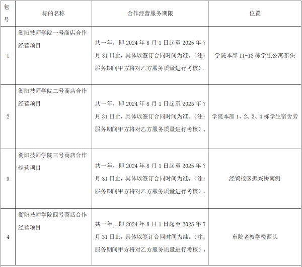 項目名稱:衡陽技師學(xué)院一號、二號、三號、四號商店合作經(jīng)營項目