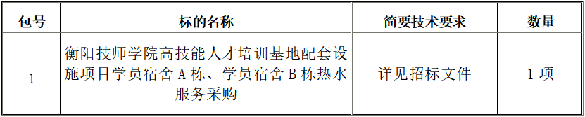 采購項目名稱:衡陽技師學院高技能人才培訓基地配套設施項目學員宿舍A棟、學員宿舍B棟熱水服務采購項目