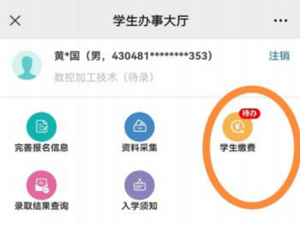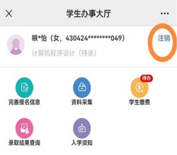 ⑤返回上一級菜單點擊(查詢另一位學生繳費情況)“注銷”