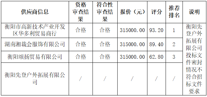 衡陽技師學(xué)院2024級新生軍訓(xùn)服裝采購項目(第二次)于2024年7月12日結(jié)束,現(xiàn)將中標(biāo)(成交)結(jié)果公告如下: