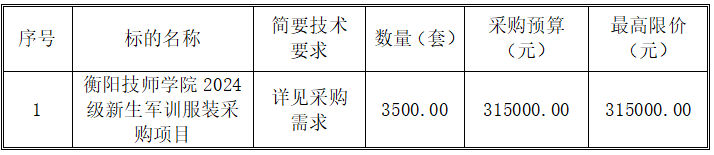 采購項目名稱:衡陽技師學(xué)院2024級新生軍訓(xùn)服裝采購項目(第二次)