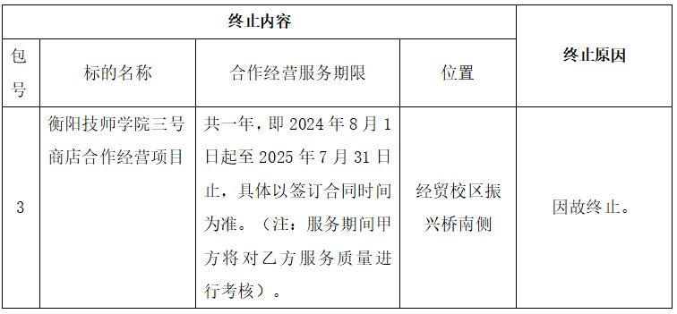 三、第三包終止內(nèi)容及終止原因: