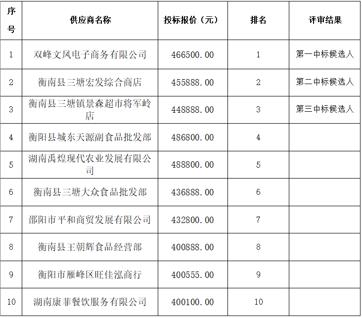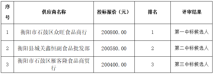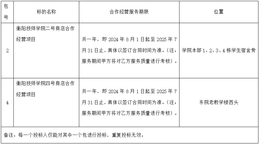 衡陽技師學院一號、二號、三號、四號商店合作經營項目(第三次)招標于2024年7月24日結束,現將中標結果公告如下: