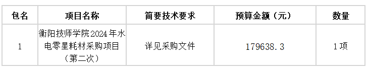 采購(gòu)項(xiàng)目名稱:衡陽(yáng)技師學(xué)院2024年水電零星耗材采購(gòu)項(xiàng)目(第二次)