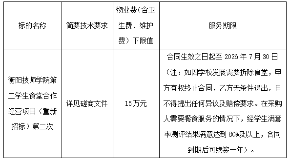 采購項目名稱:衡陽技師學(xué)院第二學(xué)生食堂合作經(jīng)營項目(重新招標)第二次