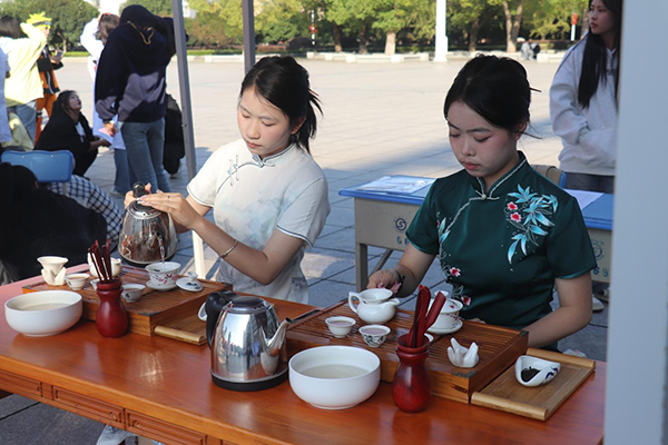 現(xiàn)場除了精彩的表演,還設(shè)置了社團(tuán)招新專區(qū),各社團(tuán)亮出“看家本領(lǐng)”,通過“技能展示、藝術(shù)體驗(yàn)、文化交流”等多種形式向師生推介各社團(tuán)特色。有點(diǎn)is傳媒學(xué)社、攝影協(xié)會融合新媒體時(shí)代特點(diǎn),打造了社團(tuán)文化展演新模式;茶藝協(xié)會、中醫(yī)推拿保健社團(tuán)、“匠心筑夢”車銑鉗社團(tuán)等以精湛技能展示了專業(yè)特色;武術(shù)、足球、籃球社團(tuán)等體育類社團(tuán)將“少年強(qiáng),則中國強(qiáng)”展現(xiàn)得淋漓盡致。