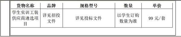 一、采購(gòu)項(xiàng)目名稱、編號(hào)采購(gòu)項(xiàng)目名稱:學(xué)生實(shí)訓(xùn)工裝供應(yīng)商遴選項(xiàng)目