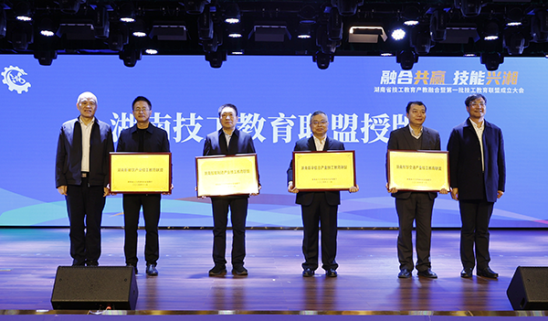 現(xiàn)場,湖南省人力資源和社會保障廳黨組書記、廳長李永軍、衡陽市委書記劉越高為湖南智能制造產(chǎn)業(yè)技工教育聯(lián)盟、湖南數(shù)字信息產(chǎn)業(yè)技工教育聯(lián)盟、湖南智慧交通產(chǎn)業(yè)技工教育聯(lián)盟、湖南新餐飲產(chǎn)業(yè)技工教育聯(lián)盟等4個技工教育聯(lián)盟授牌。