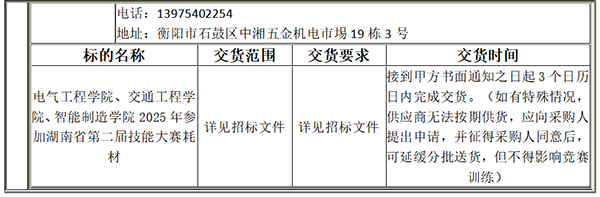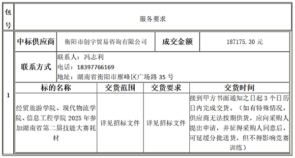 衡陽技師學院參加2025年湖南省第二屆技能大賽耗材采購項目中標(成交)公告