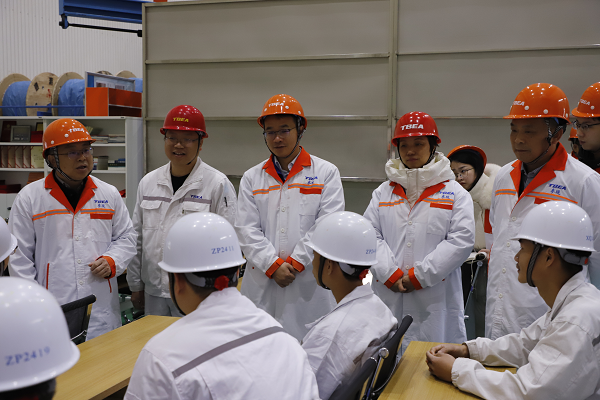 肖春林一行看望了學院在企業(yè)實習學生,送去新年祝福,詳細詢問、了解學生在公司工作和生活等情況。他鼓勵同學們,要珍惜校企合作培養(yǎng)平臺優(yōu)勢,發(fā)揚“吃得苦、霸得蠻、耐得住寂寞”的湖湘工匠精神;要強化特變電工智能化設(shè)備操作等前沿技術(shù)學習,腳踏實地工作;要發(fā)揮榜樣的力量,認真做好規(guī)劃,樹立人生目標,更好服務(wù)衡陽本地經(jīng)濟社會發(fā)展。