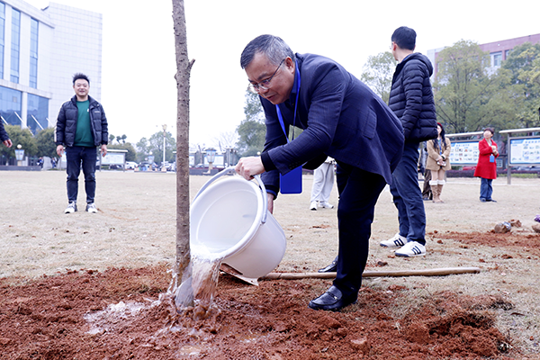 春風(fēng)催新綠,植樹(shù)正當(dāng)時(shí)。在第47個(gè)植樹(shù)節(jié)來(lái)臨之際,3月12日下午,學(xué)院機(jī)關(guān)第一黨支部組織開(kāi)展2025年義務(wù)植樹(shù)活動(dòng)。學(xué)院黨委書記肖春林與黨員同志、志愿者、師生代表共同參與義務(wù)植樹(shù)活動(dòng),以植樹(shù)護(hù)綠的實(shí)際行動(dòng)踐行生態(tài)文明理念,為校園增添綠色生機(jī)。