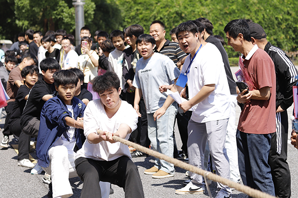 在學(xué)院文化廣場,加油聲、歡笑聲此起彼伏。交通工程學(xué)院組織班級學(xué)生拔河比賽,隨著裁判的一聲哨響,學(xué)生們緊緊抓牢手中的繩子,身體下蹲,雙腳蹬地,齊心協(xié)力往后拉,站在旁邊觀戰(zhàn)的家長們熱情高漲的喊著“加油!加油!”,讓家長感受校園生活的豐富,共同促進(jìn)學(xué)生健康成長。