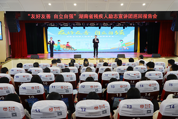 5月29日下午,“友好友善 自立自強(qiáng)”湖南省殘疾人勵(lì)志宣講團(tuán)巡回報(bào)告會(huì)在衡陽(yáng)技師學(xué)院舉行,副市長(zhǎng)曾建華、衡陽(yáng)技師學(xué)院黨委書(shū)記肖春林、省殘聯(lián)二級(jí)巡視員言建文出席報(bào)告會(huì)。衡陽(yáng)市縣殘疾人工作者代表、殘疾人專(zhuān)門(mén)協(xié)會(huì)代表、殘疾人康復(fù)托養(yǎng)機(jī)構(gòu)代表、衡陽(yáng)技師學(xué)院師生代表、助殘志愿者代表等五百余名觀眾現(xiàn)場(chǎng)聆聽(tīng)宣講。
