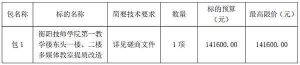 衡陽技師學院的第一教學樓東頭一樓、二樓多媒體教室提質(zhì)改造項目進行采購,現(xiàn)邀請合格投標人參加投標。