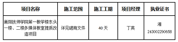 衡陽(yáng)技師學(xué)院第一教學(xué)樓東頭一樓、二樓多媒體教室提質(zhì)改造項(xiàng)目競(jìng)爭(zhēng)性磋商成交公告