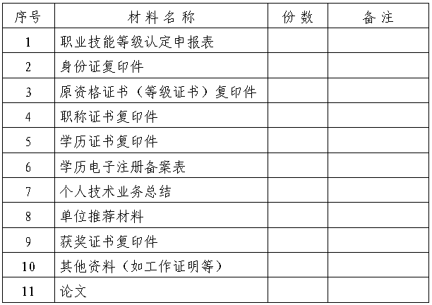 1.湖南省職業(yè)技能等級認定申報表 1 份。