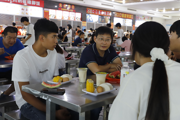 在陪餐過程中,學(xué)院領(lǐng)導(dǎo)與學(xué)生面對面溝通交流,了解學(xué)生對飯菜是否合口味、在校學(xué)習(xí)生活的適應(yīng)情況,傾聽學(xué)生的意見和建議,教育引導(dǎo)學(xué)生養(yǎng)成勤儉節(jié)約的良好習(xí)慣,囑咐同學(xué)們要均衡飲食,加強(qiáng)身體鍛煉,保持良好的生活規(guī)律,好好學(xué)習(xí)。