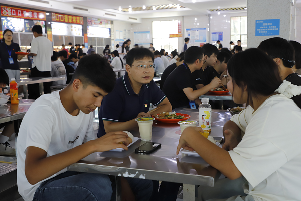 食堂里飯菜飄香、笑語盈盈?!翱谖哆€習慣嗎?”“分量夠不夠?”黨員們與各族學生同桌用餐、親切交流,原本普通的午餐時光,秒變收集意見、解決實際問題的“服務驛站”。餐桌上的氤氳熱氣,升騰起師生間的濃濃暖意。