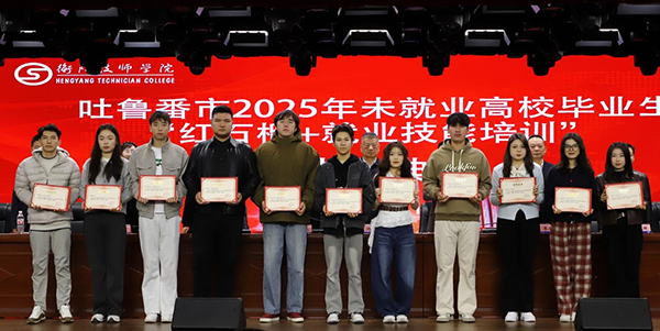 11月18日,2025年吐魯番市未就業(yè)高校畢業(yè)生“紅石榴+就業(yè)技能培訓(xùn)”結(jié)業(yè)典禮在公共實(shí)訓(xùn)基地11樓報(bào)告廳圓滿舉行。吐魯番市委組織部副部長(zhǎng)、市人社局黨組書(shū)記、副局長(zhǎng)何立新,衡陽(yáng)市人社局黨組書(shū)記、局長(zhǎng)陳駿出席并講話,學(xué)院黨委書(shū)記肖春林主持結(jié)業(yè)典禮,學(xué)院黨委副書(shū)記、院長(zhǎng)廖與飛宣讀表彰決定。