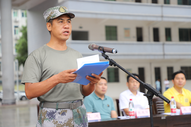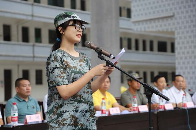 參訓(xùn)學(xué)生代表2020廣告技師班陶宇靚同學(xué)上臺(tái)發(fā)言,表達(dá)了堅(jiān)持訓(xùn)練,認(rèn)真接受國(guó)防教育的決心。承諾軍訓(xùn)期間學(xué)習(xí)軍人的愛國(guó)風(fēng)采,傳承軍人的吃苦精神,練就軍人的錚錚傲骨,迎難而上,磨煉意志,向?qū)W校、教官、向親人送上一份滿意的答卷。