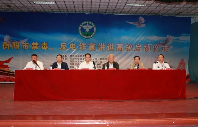 衡陽市副市長、市公安局局長胡志文出席活動(dòng)并講話。市政府辦副主任梁剛龍主持啟動(dòng)儀式,衡陽技師學(xué)院黨委書記何東球致歡迎詞,市禁毒協(xié)會(huì)會(huì)長彭輝,衡陽技師學(xué)院院長邱家才,市公安局黨委副書記、副局長吳起出席活動(dòng)。