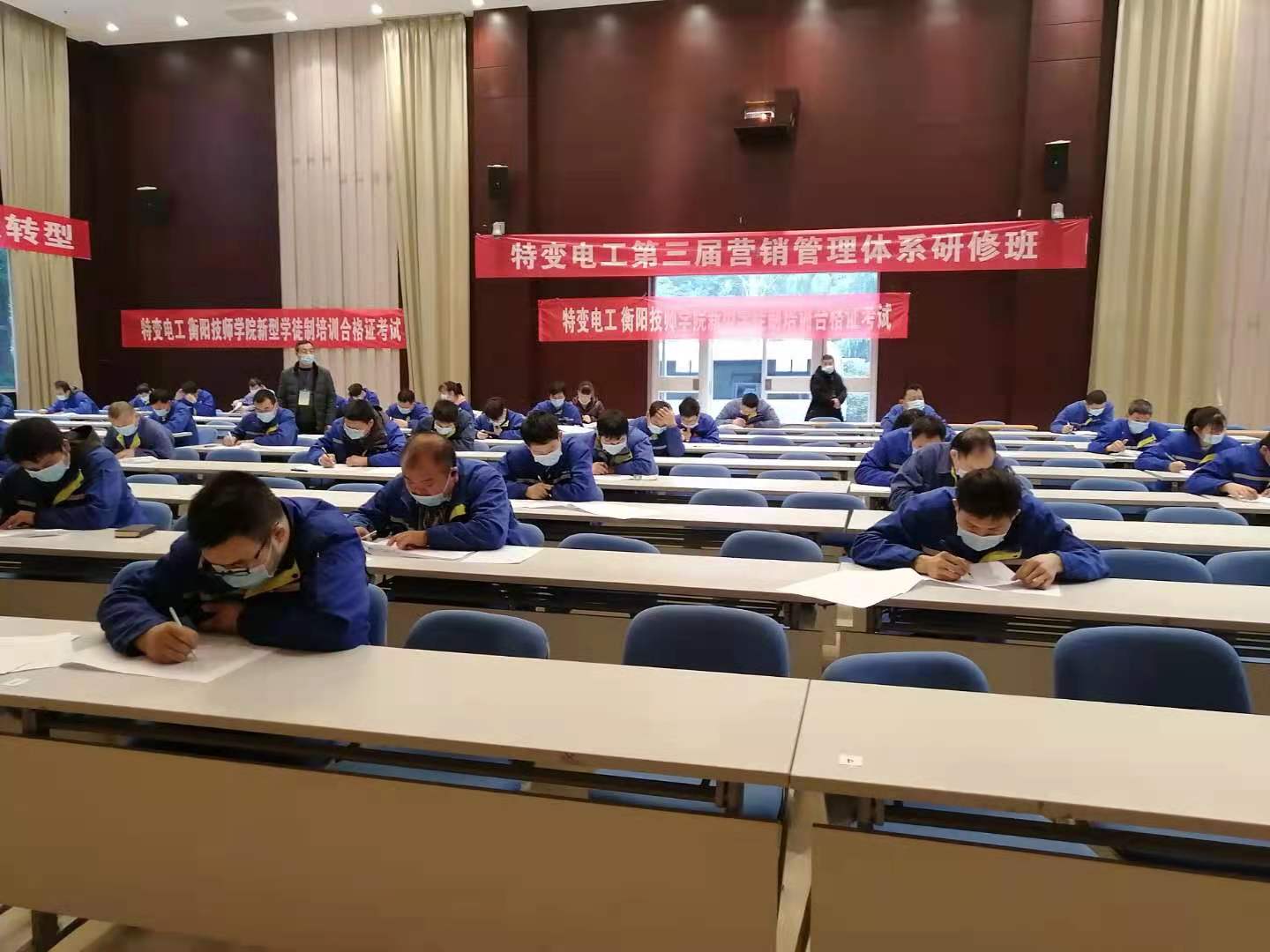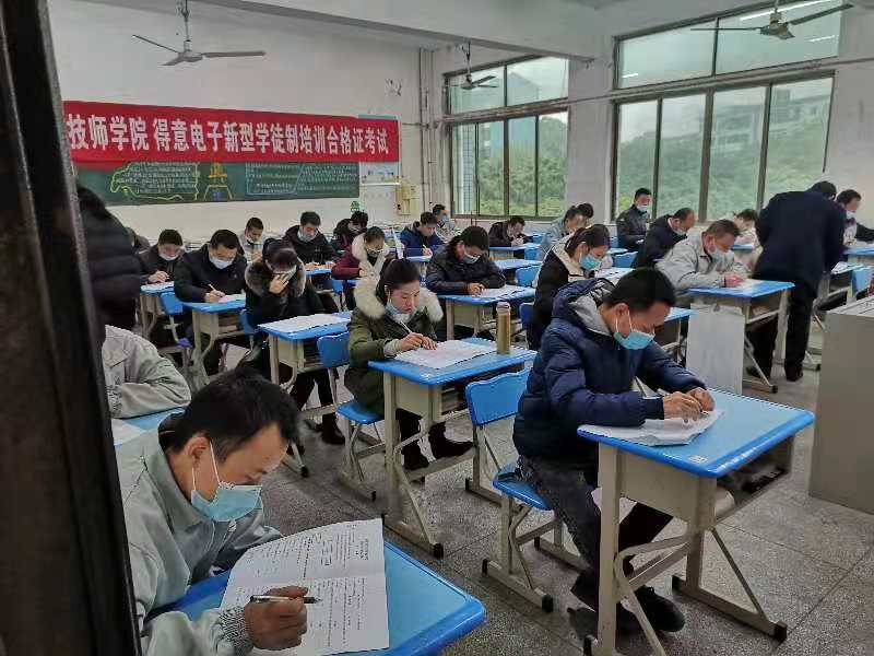 2019年,我院與湖南紅海人力資源有限公司衡陽分公司、金杯電工衡陽電纜有限公司、特變電工集團(tuán)有限公司衡陽電氣分公司、衡南得意精密電子工業(yè)有限公司和湖南華菱汽車有限公司等五家公司開設(shè)了新型學(xué)徒制培訓(xùn)班,經(jīng)過一年的培訓(xùn),2020年12月,我院舉行結(jié)業(yè)考試。考點(diǎn)分別設(shè)在特變電工、得意電子、衡陽技師學(xué)院,考試中市人社局職業(yè)能力建設(shè)處、衡陽市紀(jì)委全程監(jiān)督。