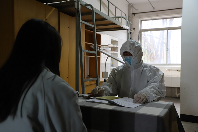 醫(yī)生對疑似學(xué)生體溫測量登記