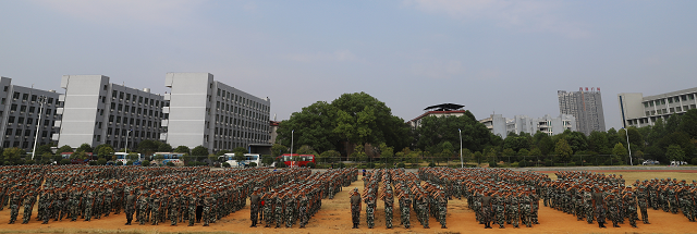 伴隨著雄壯的國(guó)歌聲,鮮艷的五星紅旗冉冉升起,迎風(fēng)飄揚(yáng)。全員莊嚴(yán)肅立,2021級(jí)新生軍訓(xùn)總結(jié)表彰大會(huì)暨開學(xué)典禮隨之拉開序幕。隨后3000 余名新生進(jìn)行分列式表演,接受檢閱,整齊的隊(duì)列,飽滿的精神,展示了2021級(jí)新生的生機(jī)與活力,令人振奮,給人以力量和希望。