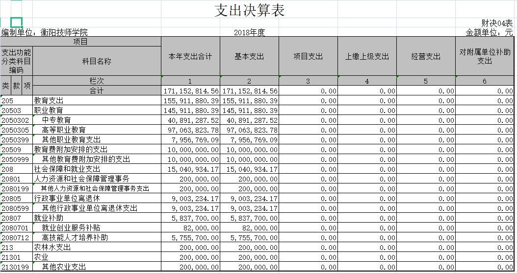(二)決算單位構(gòu)成。我院無二級預(yù)算單位,因此衡陽技師學(xué)2018年部門決算即衡陽技師學(xué)院本級2018年部門決算。