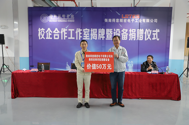 衡南得意精密電子工業(yè)有限公司向?qū)W院捐贈設(shè)備達50萬元