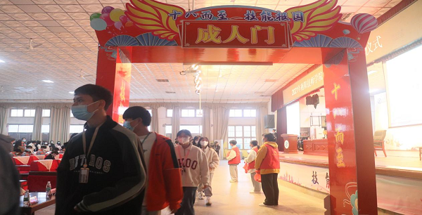 在活動的最后,帶著領(lǐng)導、家長、老師們的祝福,在場所有同學依次領(lǐng)取成人紀念章,越過成人門,并在留言板上簽名,留下這成長的幸福時刻。