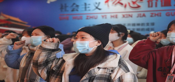 在活動的最高潮全體同學齊聲朗誦《請黨放心,強國有我》,并在學生代表的帶領(lǐng)下面向國旗,舉起右手,莊嚴宣誓,爭做有理想、有本領(lǐng)、有擔當?shù)暮们嗄辍?/p>