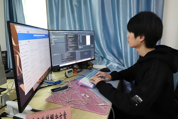 在校他認(rèn)真學(xué)習(xí),刻苦鉆研技術(shù),在2020年7月通過(guò)層層選拔加入競(jìng)賽小組。從那開始,他每天高強(qiáng)度訓(xùn)練,晚上在訓(xùn)練場(chǎng)休息,第二天中午再回宿舍洗澡,每周只休息一天,沒有寒暑假,小年回家后過(guò)年,初七返校繼續(xù)訓(xùn)練。