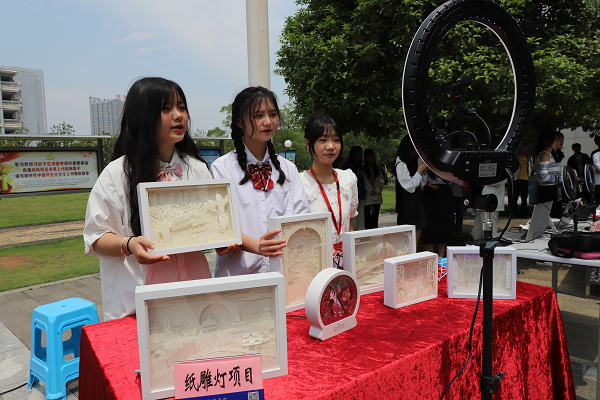 “歡迎各位小伙伴們來到我們時光漫影小店的直播間,今天帶來了我們同學自己手工制作的光影藝術燈‘紙雕燈’......”學院信息與生物技術系學生許欣怡、鄭淑芳、曾琪化身“主播”,現(xiàn)場直播介紹紙雕燈項目,吸引不少初中生在技能特色展示區(qū)駐足圍觀,贏得現(xiàn)場陣陣贊嘆。