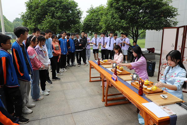 “今天我們選泡的是紅茶,其條索緊細,色澤烏潤,香氣香甜迷人。沖泡之前,用清清的泉水,洗凈世俗的煩惱,此刻讓我們共賞茶藝溫馨?!被顒蝇F(xiàn)場,經(jīng)濟貿易系茶藝協(xié)會負責老師胡以婷從佳茗酬賓、冰清玉潔、佳人入宮、潤澤香茗、懸壺高沖(泡茶)、點水留香(分茶)、香茗酬賓(奉茶)、細啜滿品(品茶)、收杯謝客等茶藝程序為大家介紹體現(xiàn)中國傳統(tǒng)文化的紅茶茶藝。